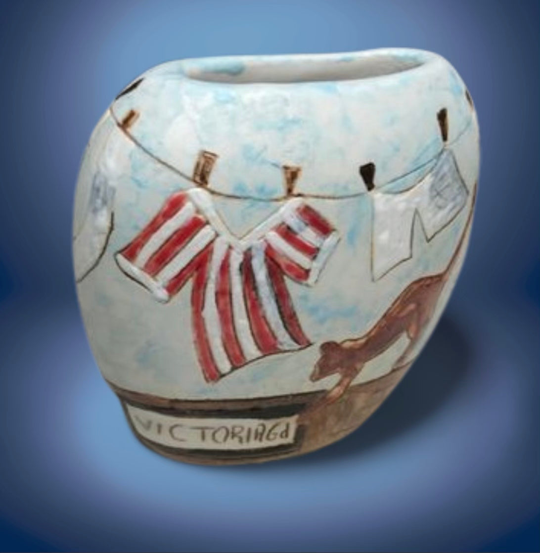 Football inspired vase all the kit blowing in the wind on the washing line on wash day. Sunderland, Stoke City, Sheffield, Southampton, Exeter city, Brentford, Lincoln city and Cheltenham town. Football is one of the most popular sports around the world. It's a team game, most people love to play and watch football it as the power to unite people, if you play in your backyard, sit together to watch the match or go to the stadium to watch.